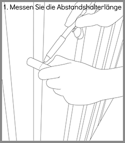 Messen Sie die erforderliche Länge an der vorliegenden Wand. Siehe Bild. |