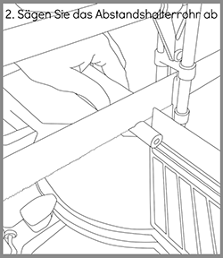 2. Sägen Sie das Abstandshalterrohr mit einer feinen Säge ab. Es ist sehr wichtig dass der Schnitt gerade wird und eine Schneidlade kann Ihnen da helfen. |