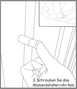 1. Für die Montage an Fassaden die nicht glatt sind, z.B. Holzpaneele, finden Sie unter „Zubehör“ Abstandshalterrohre die Sie selbst auf die passende Länge kürzen können.